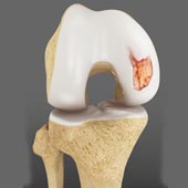 The articular or hyaline cartilage is the tissue lining the surface of the two bones in the knee joint. Cartilage helps the bones move smoothly against each other and can withstand the weight of your body during activities such as running and jumping. Articular cartilage does not have a direct blood supply to it, so has less capacity to repair itself. Once the cartilage is torn it will not heal easily and can lead to degeneration of the articular surface, leading to the development of osteoarthritis.